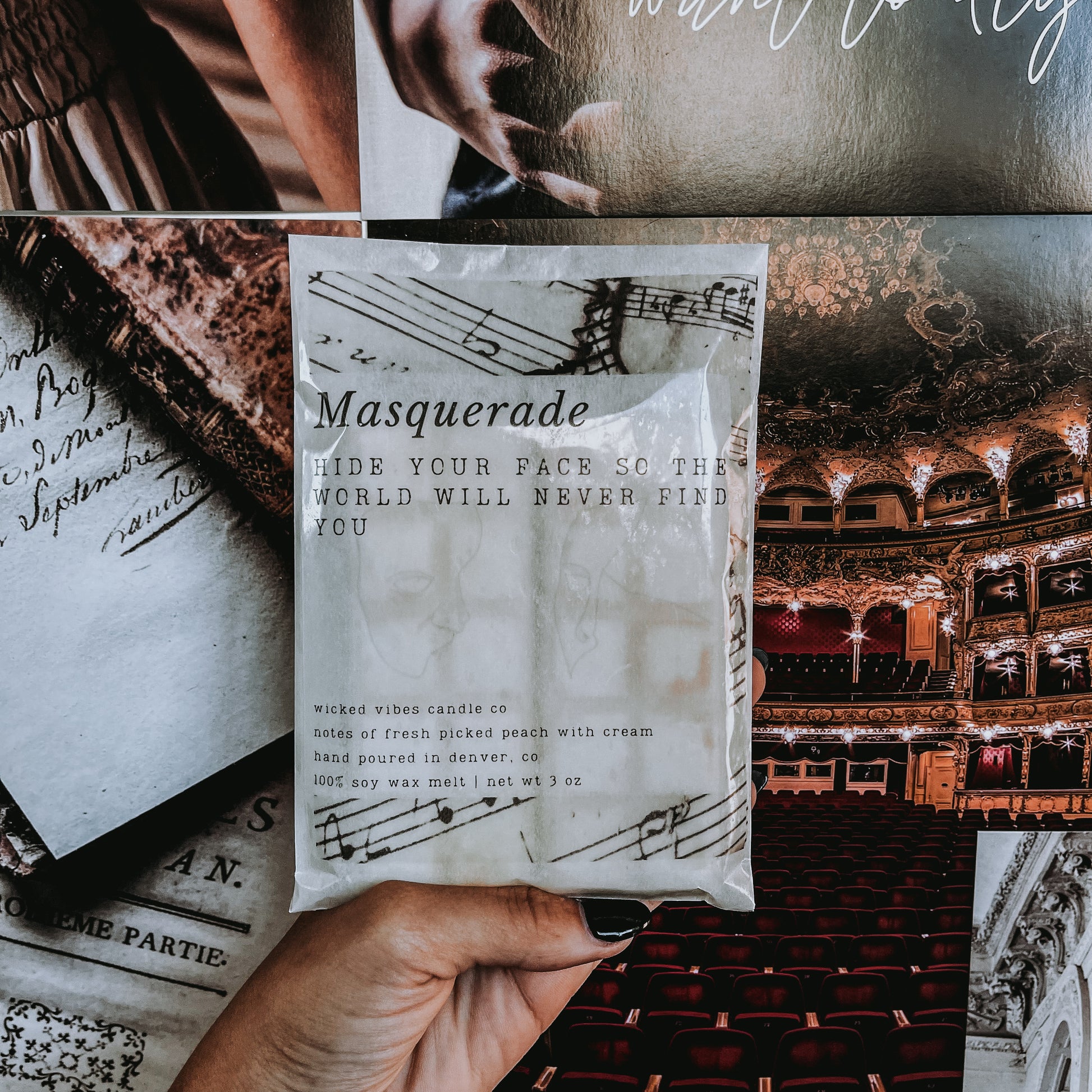 Inspired by The Phantom of the Opera, Masquerade captures the haunting beauty of mystery and desire. Juicy, sun-ripened peaches swirl with soft cream, creating a fragrance that’s as indulgent as a forbidden waltz beneath the chandeliers. Sweet yet shadowed, this scent invites you to lose yourself behind the mask and revel in the romance of the unknown.